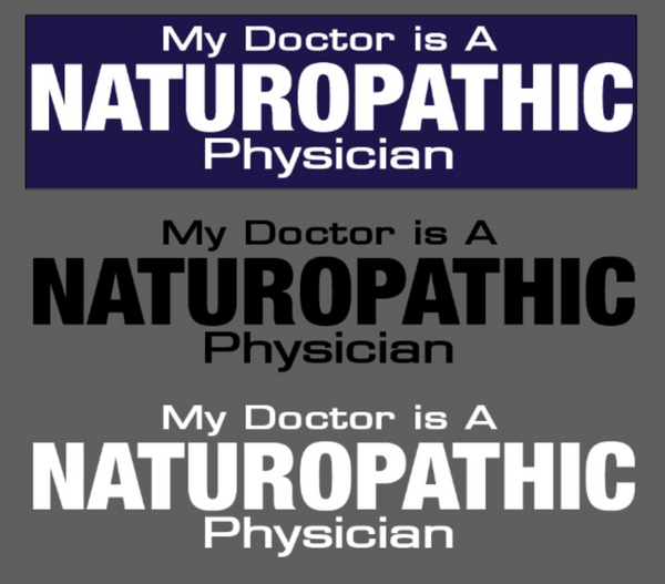 The "My Doctor is A Naturopathic Physician" sticker is a modern re-make of the original one from the NAEM conference in the 1970s.